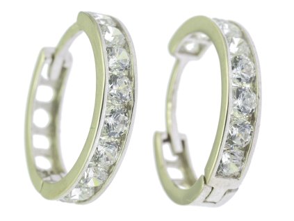Náušnice kroužky s bílými zirkony. Dárková krabička zdarma.