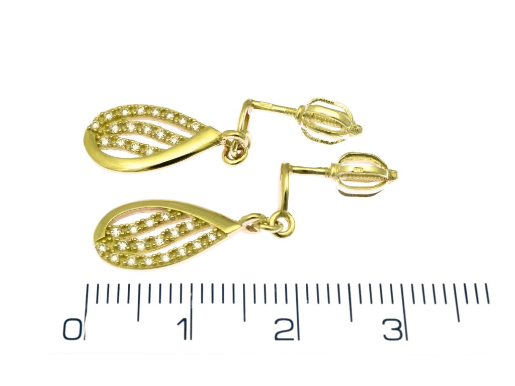 Visací zlaté náušnice se zirkonem. Dárková krabička zdarma.