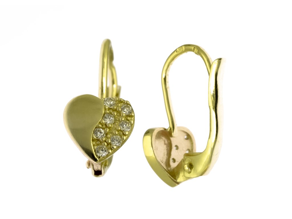 Dětské celozlaté náušnice ve tvaru srdíčka. Dárková krabička zdarma.
