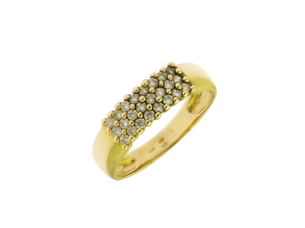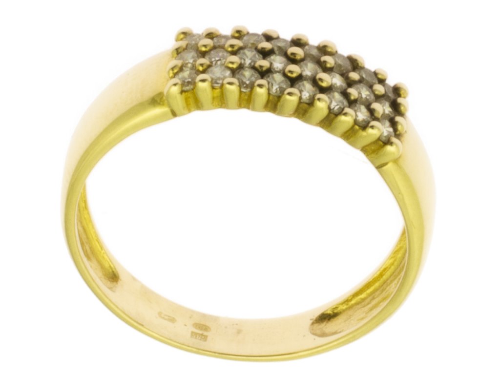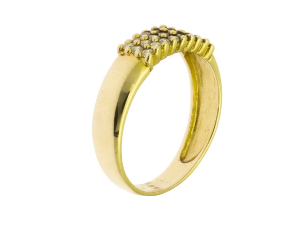 Zajímavý dámský prsten dvěma řadami zirkonů. Zbylá část je hladká, lesklá. K objednávce dárková krabička zdarma.