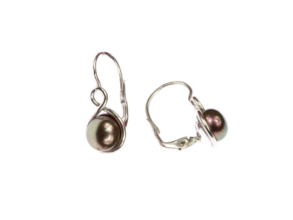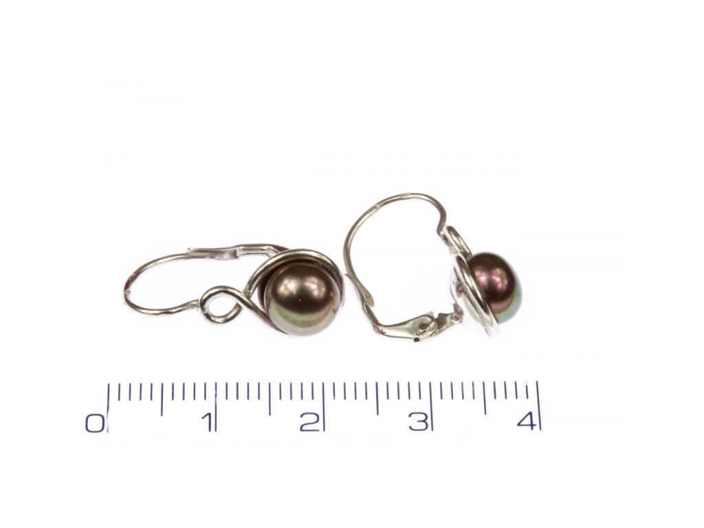 Zajímavé dámské náušnice z bílého zlata. Náušnice je zdobené tmavou kulatou perlou o průměru 7 mm. Celková délka náušnice je 20 mm. Zapínání je na patent, který umožňuje snadnou manipulaci s náušnicí. Náušnice jsou rhodiované. Tyto náušnice jako dárek jistě potěší každou ženu. K objednávce dárková krabička zdarma.